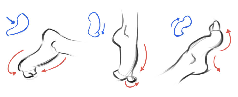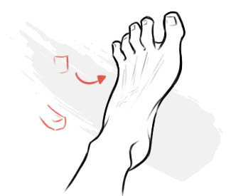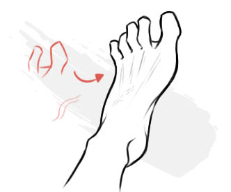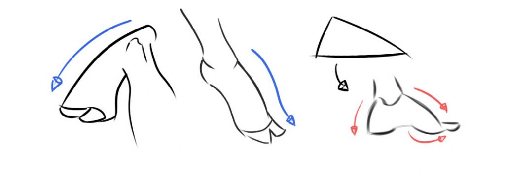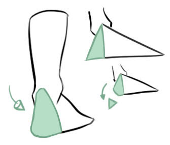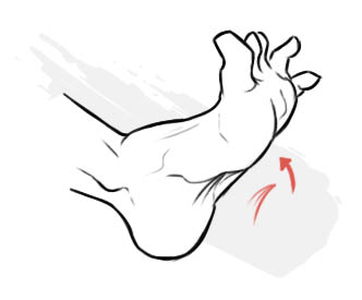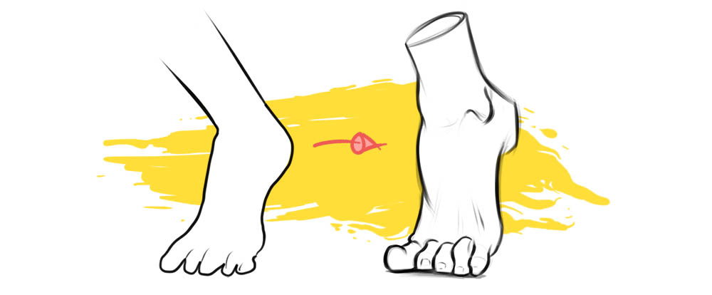 Il est essentiel de penser à la force qu’exerce le pied lorsqu’on le dessine. On ne dessine pas un simple objet sans vie, mais bien une forme organique ! Imite la pose de ta référence et sens comme le poids du corps exerce une pression contre le sol.