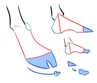 Pour t’entraîner, dessine maintenant le pied à côté de ta référence en commençant d’abord par dessiner des formes simples : triangle, rectangle, etc. Le but est de t’exercer à dessiner le pied en version simplifiée.