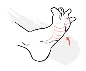 Le dessous du pied présente plusieurs pliures de peau que tu peux représenter par des lignes fines. Ça permet de mettre en avant le volume et d’ajouter du détail.