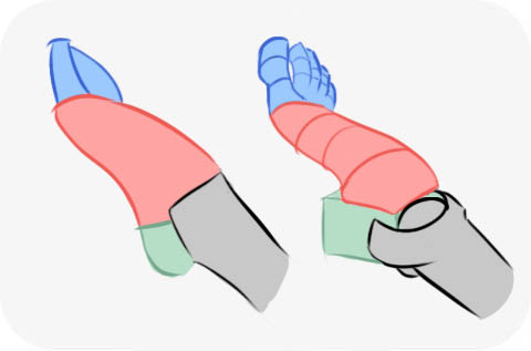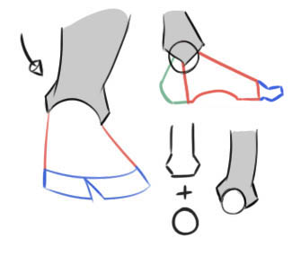 Comme pour le poignet, la cheville peut être simplifiée à une forme de rectangle avec les extrémités plus large. Comme une clé à molette !