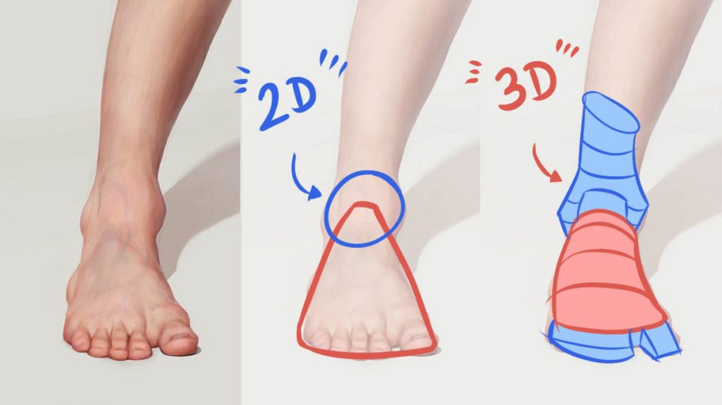 En passant ta vision en mode 3D, tu seras capable de dessiner plus facilement le pied sous tous ses angles.