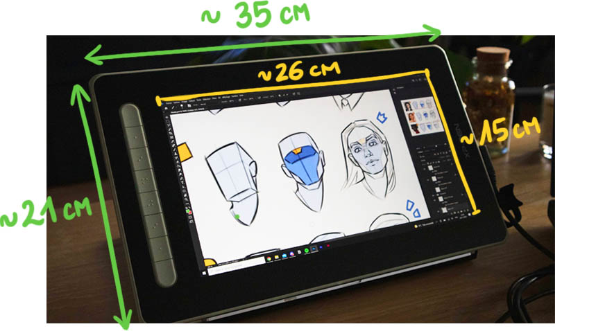 La tablette est confortable et la surface de travail active est suffisamment grande pour ne pas se sentir à l’étroit. On mêle précision et confort et au vu du budget, elle n’a rien à envier aux autres.