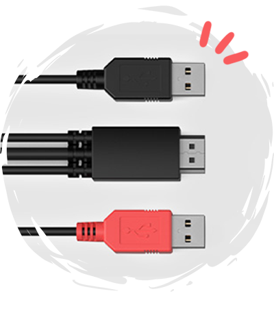 - Un câble 3 en 1 (USB-C vers 2 USB-A et un HDMI)